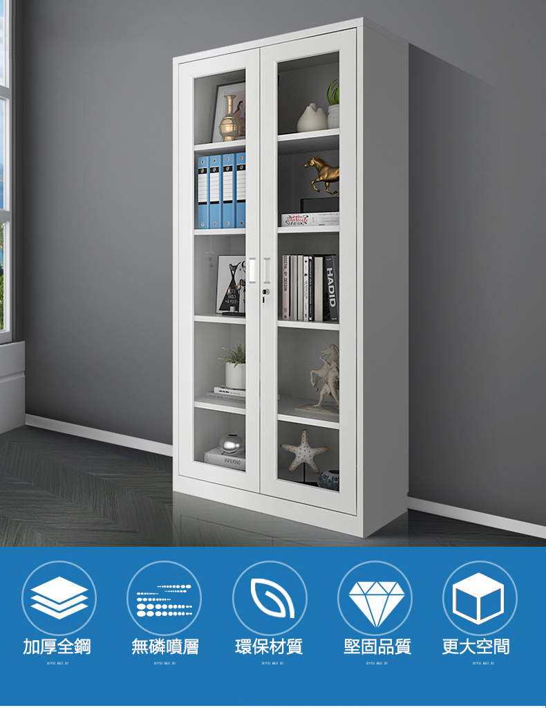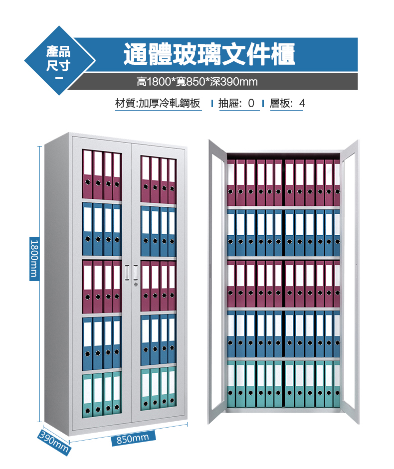 寬體中六斗文件櫃多層加厚抽屜對開門玻璃資料櫃檔案櫃