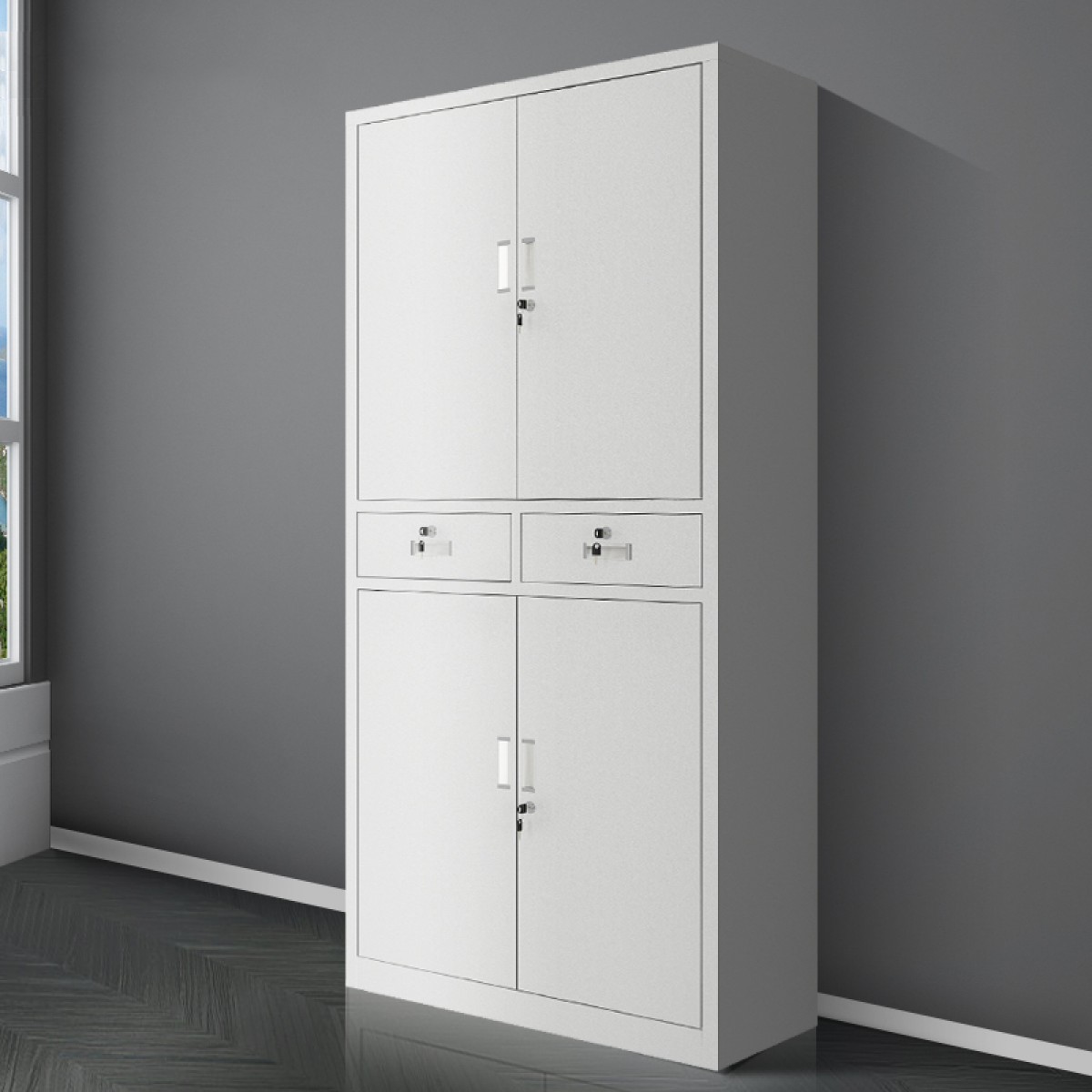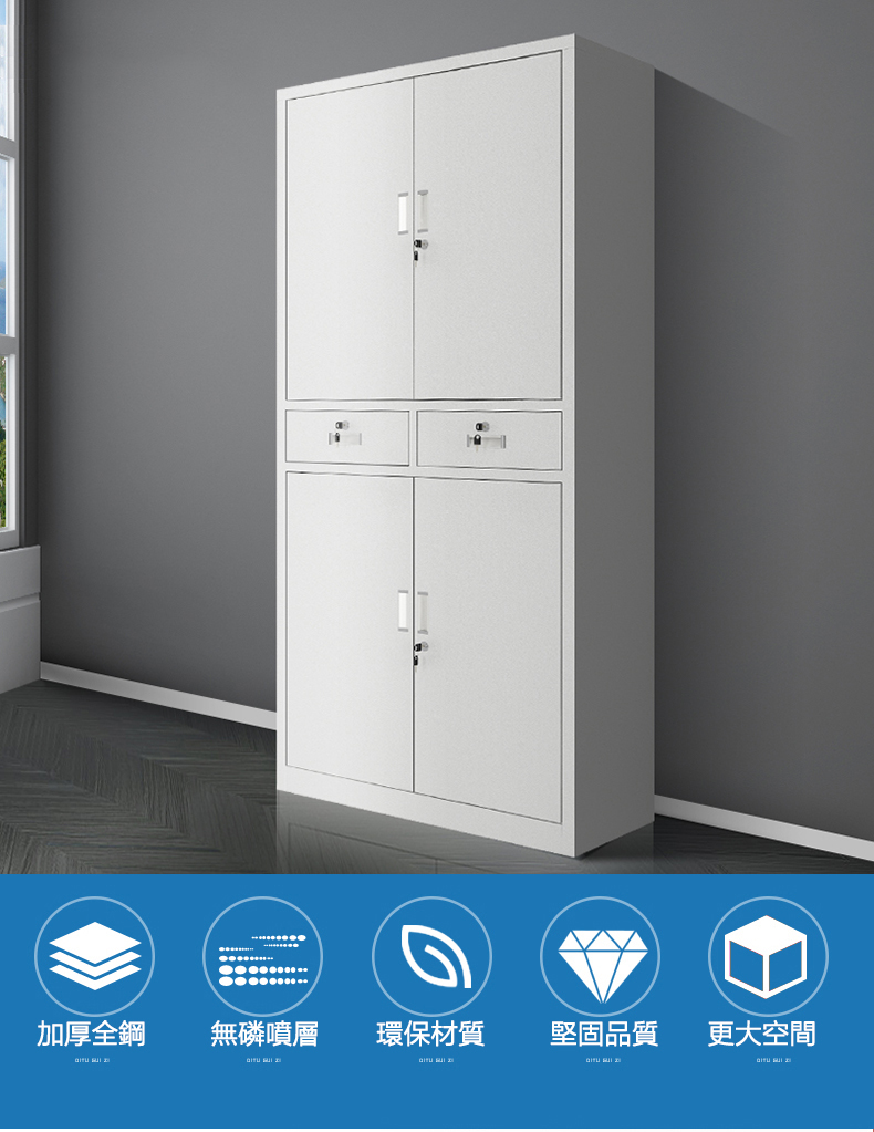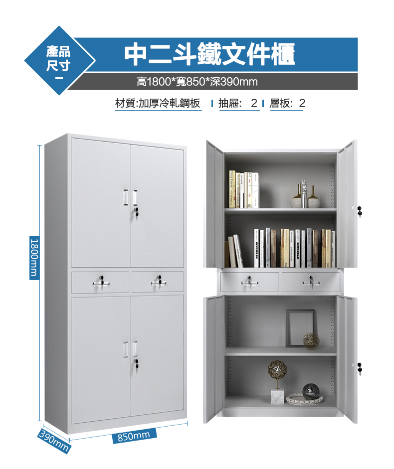 中二斗鐵門文件櫃鐵皮櫃多層鐵門對開資料櫃抽屜帶鎖財務檔案櫃